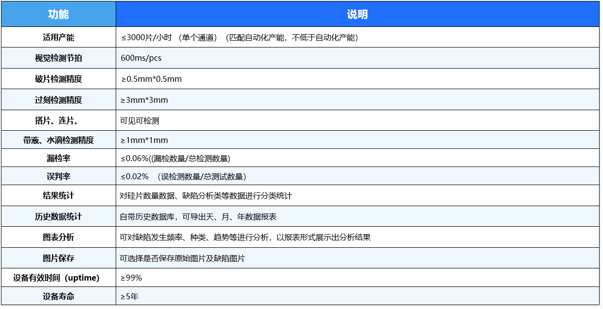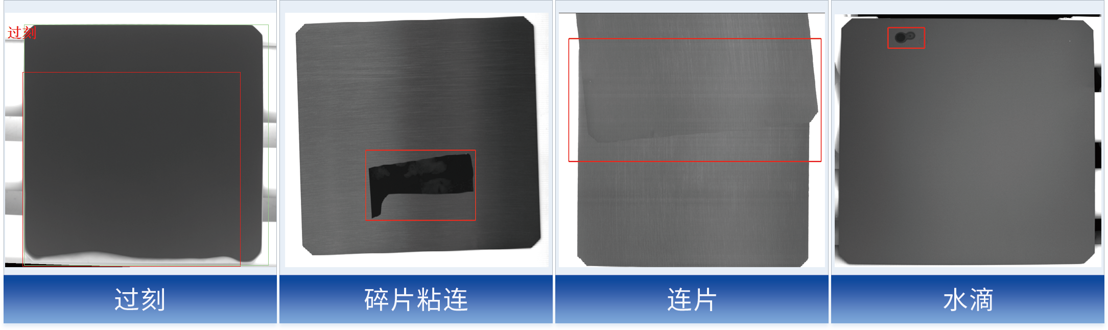 帝视科技电池片过刻带液智能系统,采用高速工业相机和特制光源,利用AI算法精准地定位各种缺陷,实现设备暂停和剔除功能,以减少堵片、批量不良下穿,有效地降低资源浪费,提升了生产效率和产能。