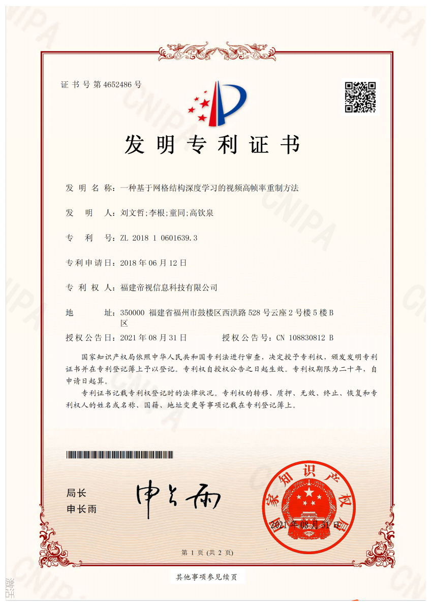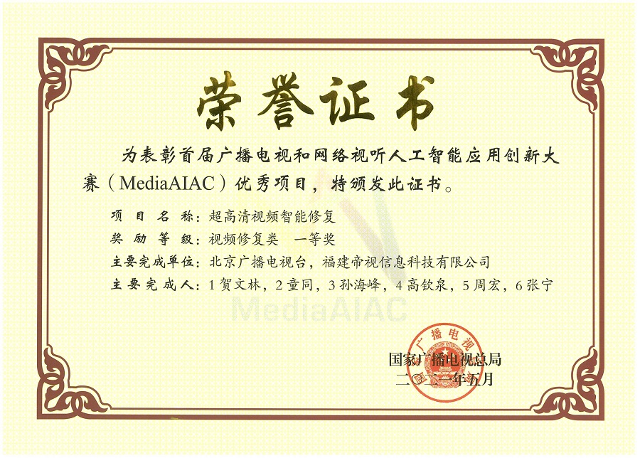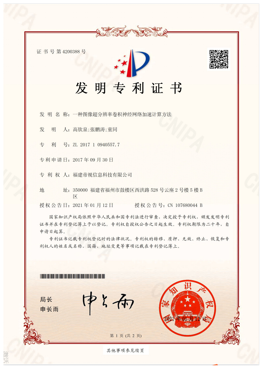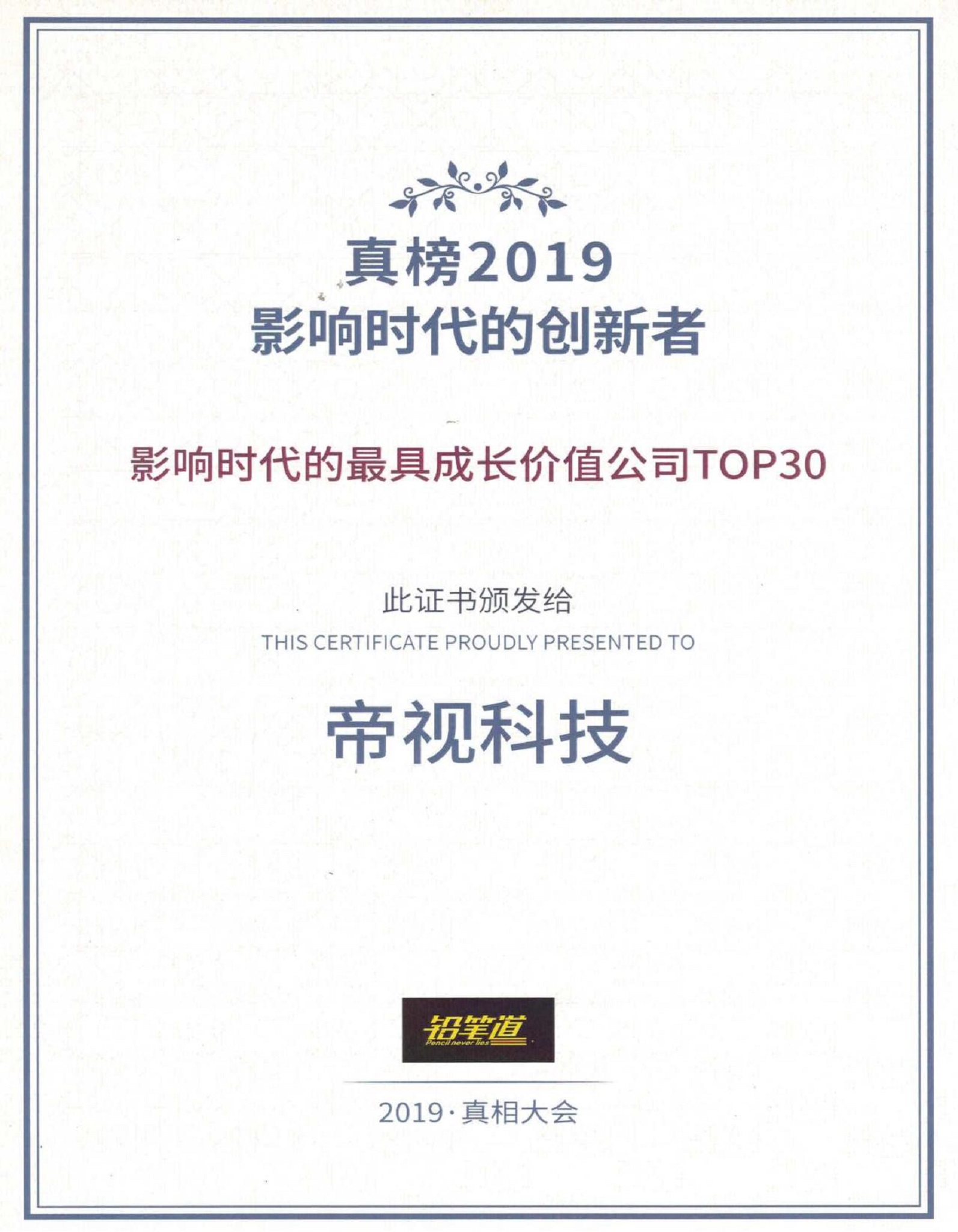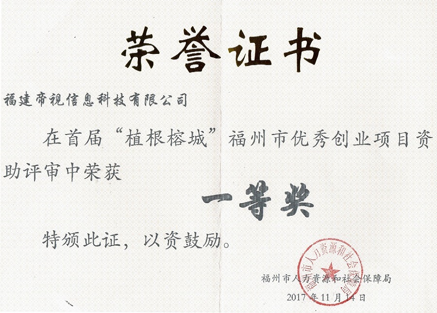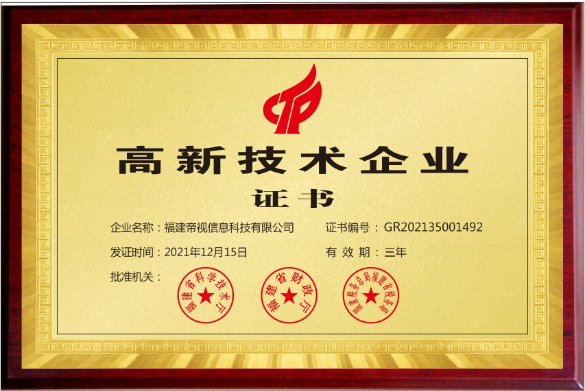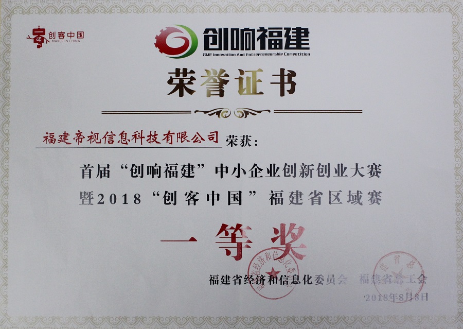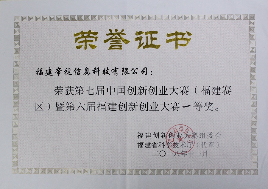 成立至今,公司已成长为福建省留学人员归国创业的示范企业和人工智能领军企业,是福州市新一代信息技术产业链的链主企业,及福州市人工智能产业技术研究院和福州市人才发展促进会人工智能专委会依托建设单位,助力推动国家数字经济发展和产业智能化升级。在不断深入核心技术研发和产业赋能的过程中,帝视科技先后获得福建省科学技术进步一等奖、人社部最具成长潜力的留学人员创业企业、福建省产业领军团队、福建省百人计划团队、福建省第六批省级新型研发机构、福建省级博士后创新实践基地、福建青年五四奖章集体、福州青年五四奖章集体标兵、福州市“工人(五一)先锋号”、2018年“创响福建”中小企业创新创业大赛冠军、2018年中国创新创业大赛福建省一等奖、第五届“创青春”中国青年创新创业大赛(互联网组)全国总决赛金奖等荣誉。