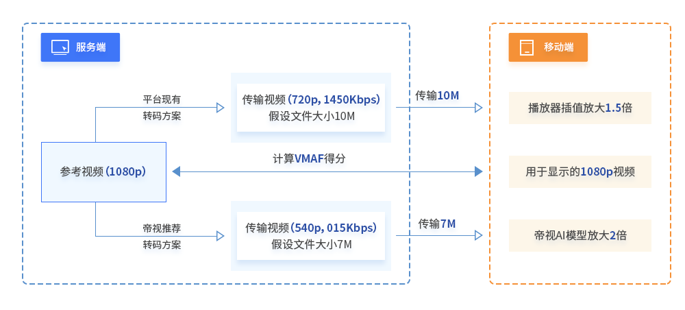 帝视科技基于最新的AI技术与高性能异构编码技术提出创新性的解决方案,利用终端的边缘计算能力对下载视频与图片进行超分辨率放大和画质修复,并采用最新的CPU+GPU高性能异构编码技术,在近乎无损的情况下,最大程度降低消耗的网络资源,可达到节约30%的带宽成本,提升画质与终端的显示效果。