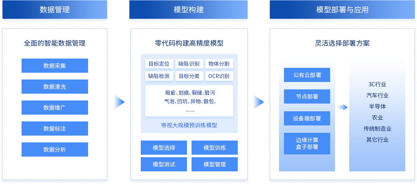 无需专业技术人员,只需通过点击鼠标等简单操作,即可完成AI模型的训练和部署,极大降低了制造业对智能应用的使用门槛。