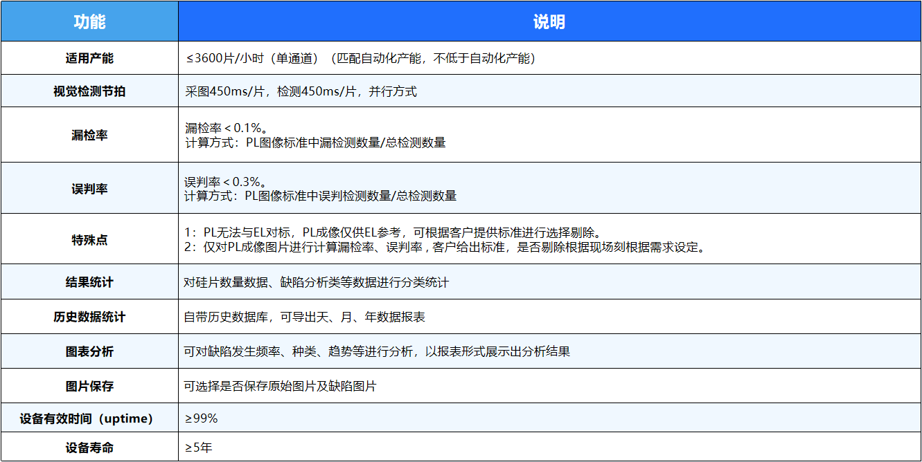 帝视科技的PL检测模组(瑕疵/色差),是将自动光学(AOI)色差在线检测与电池片PL检测组整合到一起的一体化解决方案,采用高度智能算法,精准检测电池片色差和缺陷,可极大提高缺陷的识别率,降低误判率和漏检率。